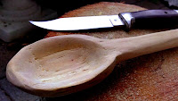 After showing a greataunt the spoon above, she insisted I attended at woodcarvingcourse with her, during a weekend. She has done quite a bit of d.i.y. Made this during that weekend. The birchwood is from the same tree as the spoon.